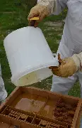 – Nourrissement au sirop. Un sirop riche (700g de sucre pour 300g d’eau) peut être distribué lorsque la température dépasse 14° C. Cela permet de reconstruire rapidement les réserves avant l’hiver.