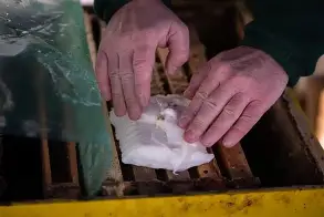 – Utilisation du candi. Le candi (pâte à 90% de sucre sec) est idéal en hiver, car il limite la fatigue des abeilles et réduit les risques de gelées internes. Placez le juste au-dessus de la grappe.